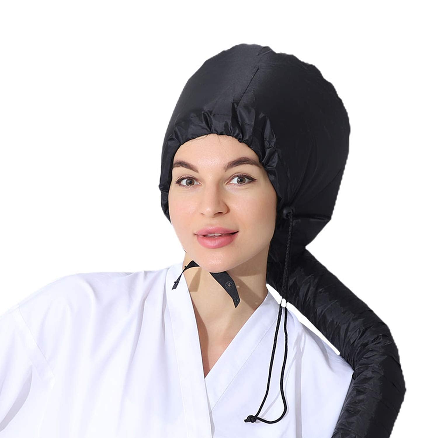 Details: FEATURES Unique adjustable chin strap and side fitting drawstring to secure the hood in place Largest hood capacity to fit over many types of hair curlers and rollers. Over 60 ventilation holes for faster and more even heat distribution. 39” (100cm) flexible hose - ideal for multi-tasking Unique, non-slip, silicone hose collar, fits most standard round hair dryer nozzles. Ideal for use with conditioning treatments. Hand washable. Nylon storage bag provided - ideal for travelling. HOW TO USE 1.Place the hood on your head, entirely covering your hair. 2.Pull the drawstring tight to secure the hood and fasten the chinstrap if necessary. 3.Attach the elastic collar to your hairdryer, hand the elastic band on the hairdryer to secure the tube. 4.Turn the hairdryer on to inflate the hood. Using the LOW setting of your hair dyer and then adjust accordingly. Note: For optimum results and to avoid possible burns through overheating please start the hairdryer from Low settings. And please check the Maximum use time of your hairdryer before start. Packing including: 1 hairdryer hood with storage bag (Hairdryer not included) 1 use manual