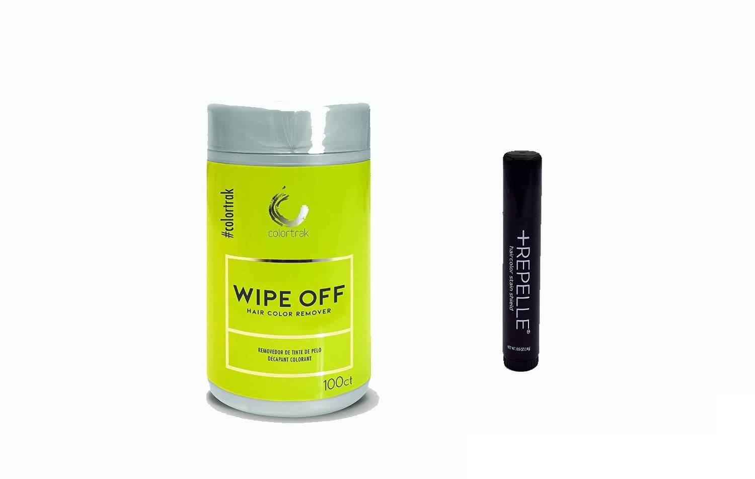 Colortrak Hair Color Remover Wipes Dispenser and Colotrak Repelle Professional Hair Color Stain Shield, Protect and Remove Hair Color Stains with this Combo Kit