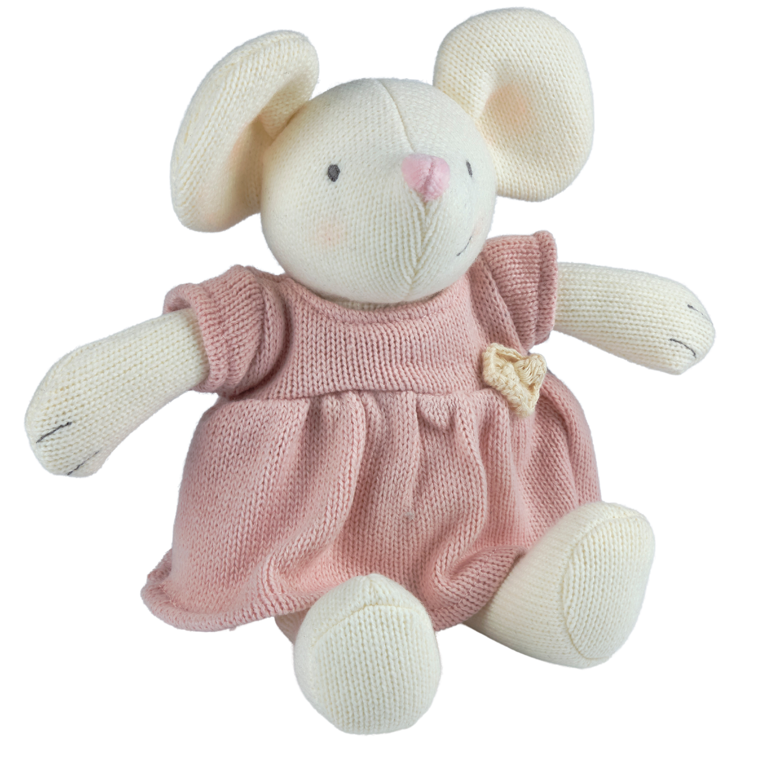 Tikiri Toys beautiful knitted Meiya the Mouse is made with soft organic yarn which makes her so soft and ideal for those snuggles at bedtime. She is knitted and has lovely, embroidered details. Her great big ears are perfect to listen out for dropped crumbs of cheese.