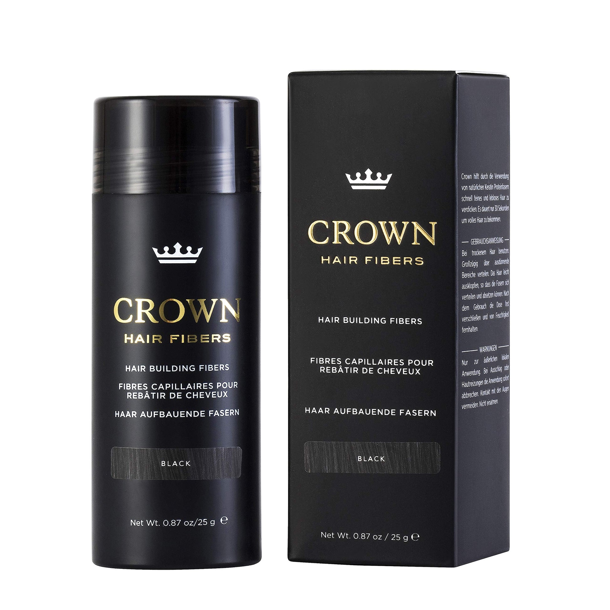 CROWN HAIR FIBERS for Thinning Hair (BLACK) - Instantly Thickens Thinning or Balding Hair for Men & Women - 0.87oz/25g Bottle - Best Natural Keratin Hair Loss Concealer