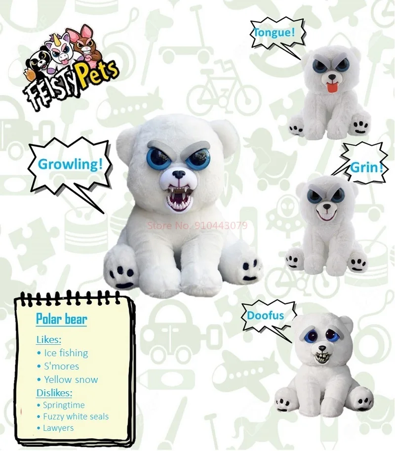 Feisty Pets Funny Face-Changing Soft Toys: Snow Leopard, Unicorn, Bear, Panda - Angry Animal Stuffed Plush Dolls for Children