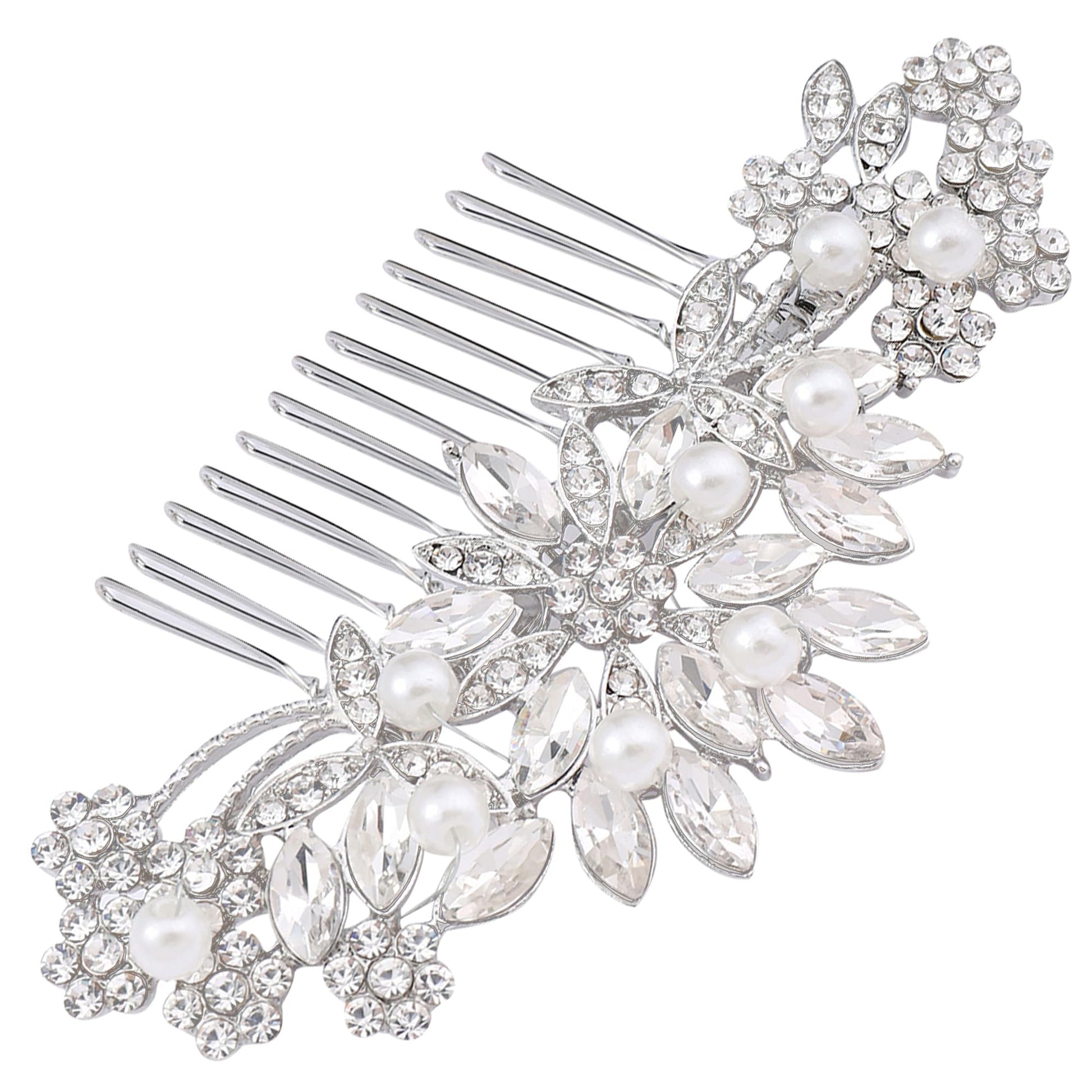 Hapibuy Crystal Wedding Hair Comb Bridal Hair Comb Pearl Wedding Headpiece Silver Hair Accessories