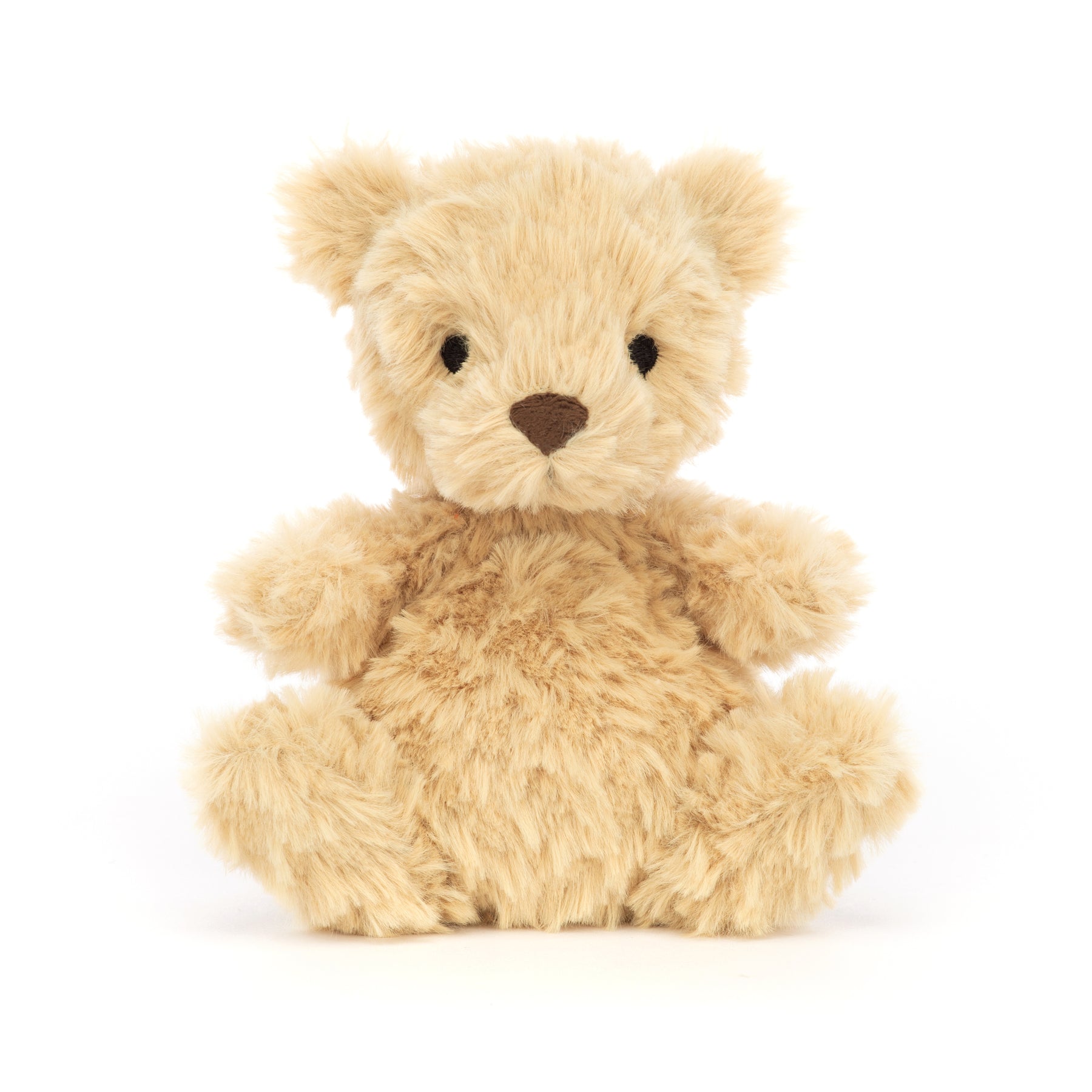 Yummy Bear is pocket perfection with silky, tufted honey fur. This gentle bear has a slumped, relaxed pose, cocoa nose and embroidered eyes. A gorgeous gift for tiny paws.