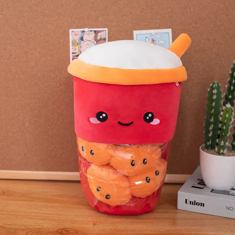 Kawaii Animal Balls Pudding Candy Bag Pillow Plush Stuffed Mini Doll of Donut Boba Milk Tea Bat Newt Cat Nap Plushie