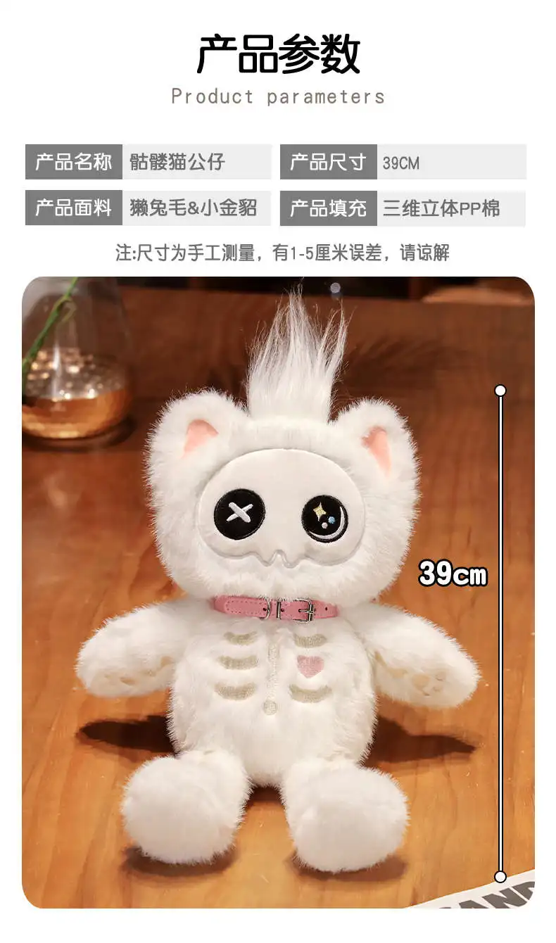 Get into the spooky spirit with the Kawaii Devil Skeleton Cat Plush Toy, a delightful blend of cute and horror. This cartoon-style stuffed animal features a lovable yet eerie design, with a devilish twist on a classic cat. Perfect for Halloween and Christmas gifts, this plush toy adds a touch of whimsical spookiness to any occasion. Whether it's for a young one's toy collection or as a unique seasonal gift, this adorable horror monster cat is sure to bring smiles and shivers alike.