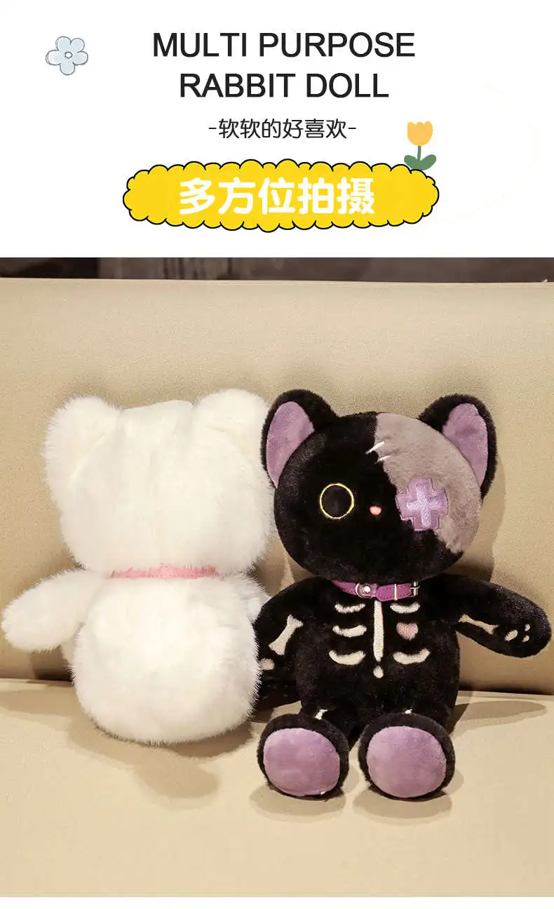 Kawaii Devil Skeleton Cat Plush Toy - Cute Horror Monster Gothic Skull Kitten for Kids - Halloween and Xmas Gifts