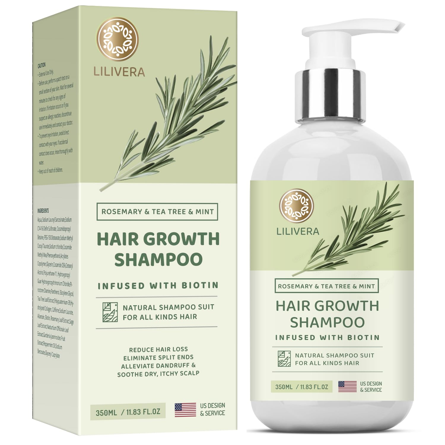 Lilivera Rosemary Hair Growth Shampoo: Shampoo for Hair Loss - Shampoo for Thinning Hair for Men and Women - Rosemary Mint Strengthening Shampoo with Tea Tree Oil Bition - 11.8 fl. oz