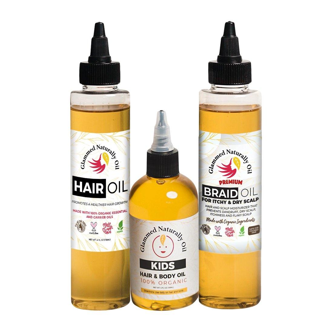 - The Mummy and Me bundle includes the Hair Oil, Braid Oil, and Kids Oil in 4oz sizes.