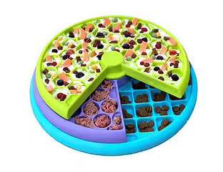 Dogs have to navigate the three layers of food compartments by spinning each one to reveal the treats. With over 100 treat compartments, this dog puzzle toy will keep dogs busy and engaged. It even has enough space to be used as a slow feeder in order to lengthen mealtimes and encourage your dog to eat at a slower, healthier pace. Perfect for dry dog food, kibble, treats, wet food and raw food, it´s easy to smear it out by taking apart the three layers and filling each layer with your dog's favorite food.